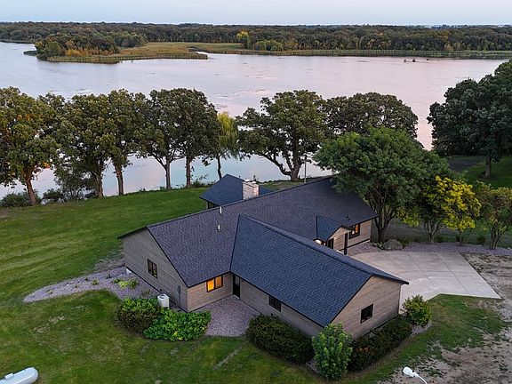 Outdoors, the property is enhanced by boulder retaining walls, manicured trees, and updated landscaping. Two impressive outbuildings provide endless possibilities: a 40' x 90' building with new steel and a 72' x 65' concrete-floored building. (Insulating and lining the two sheds can be negotiated). On the shoreline, enjoy your private boat landing and boat house—ideal for lakeside living and recreation.