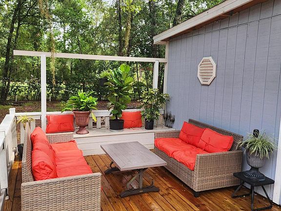 Charming Home on 2 Acres w/ Bonus Tiny Home, Pond & More! Escape to your own private retreat on 2 beautiful acres—perfect for hobby farming, quiet country living, or multi-generational needs. Bring your chickens—the custom concrete-and-wire coop is already in place! The main home was freshly painted and is full of charm and character, offering 3 bedrooms and 2 full baths. Inside, you'll find a cozy wood-burning fireplace, newly updated bathrooms, and a cozy kitchen featuring abundant storage. Step outside onto the newly constructed 12x35 deck, ideal for relaxing or entertaining. Enjoy the serene views of your private pond—complete w/ a paddle boat. The property also features a fully equipped tiny home (12x40) w/ its own water, sewer & power connections. It includes a living area, kitchen, bedroom, bathroom, and washer/dryer hookups—perfect for guests, rental income, or extended family. All of this is located less than 30 minutes from Jacksonville offering the perfect blend of peaceful country living with city convenience.