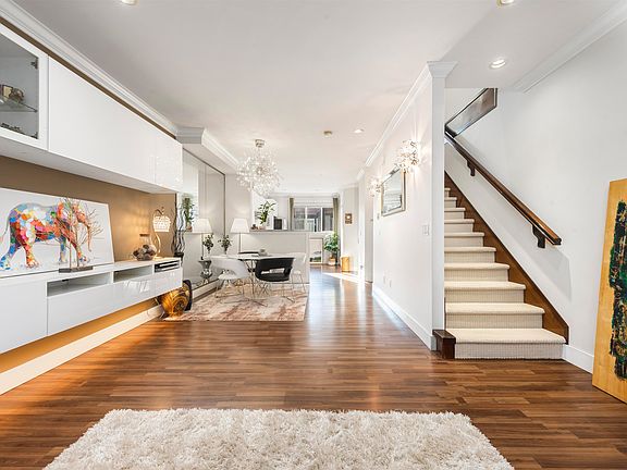 Welcome to Jasmine Court, a well-kept three-level townhouse offering a practical layout with 3 bedrooms, 2.5 baths, an extra workshop and a tandem garage with extensive custom and tasteful cabinetry. Features include 9' ceilings on the main level, radiant hot water heating, gas fireplace, an updated kitchen with granite countertops and stainless steel appliances, crown moulding, a built-in vacuum, and security system. The home is in excellent condition and designed with plenty of smart storage throughout. Conveniently located near McNeill Secondary, Anderson Elementary, Garden City Park, shopping, and transit, this residence enjoys a central yet quiet setting with easy access to everyday amenities.