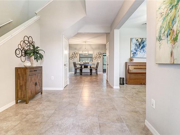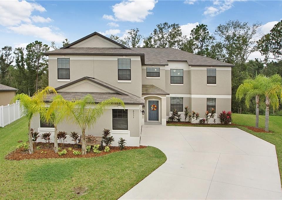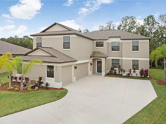 Picture Perfect & move-in ready! Why build when you can move into a totally perfect & upgraded home w/all the bells & whistles in the newly built community of Silverado Ranch in the heart of Wesley Chapel. This is a great opportunity to live in a luxurious 3,736 sqft home offering 5 bedrooms + enormous bonus room, 3 car garage, on a peaceful conservation lot & an oversized screened lanai, at a great price. There is no shortage of space in this open concept home w/grand entry & great conservation views from the kitchen, family room & casual dining. One bedroom downstairs. Large kitchen includes an island w/granite counter-tops, casual dining & stainless-steel appliance, 42" kitchen cabinets, low maintenance ceramic tile floors in foyer, kitchen, family rm, laundry rm & all baths. 2 systems, 15 SEER High-efficiency Heating & A/C system, programmable thermostat, upgraded Florida friendly landscaping pkg. Upstairs features a very large bonus room w/double doors, nearly the size of the 3-car garage. Elaborate & stunning master suite w/additional sitting room, long spacious custom walk-in closet, large shower, dual vanities & a relaxing roman tub for soaking. Total of 4 bedrooms upstairs. All appliances are included, as well as washer, dryer & new water softener. Silverado Ranch amenities: open-air clubhouse, resort swimming pool, dog park & miles of trails. Enjoy the Florida lifestyle! HOA fee includes internet & basic cable. Dining rm chandelier shown in MLS, & internet, does not stay, sellers to replace.