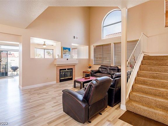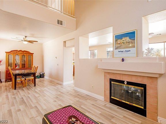 This fabulous two-story home is located in the heart of Las Vegas, minutes from everything. The first floor enjoys an open kitchen and a two-way gas fireplace dividing the living and family room. All three bedrooms are located on the second floor. Primary features balcony, double sinks, and separate tub and shower. The other two bedrooms share a combined bathroom. The two-car garage door was recently upgraded.