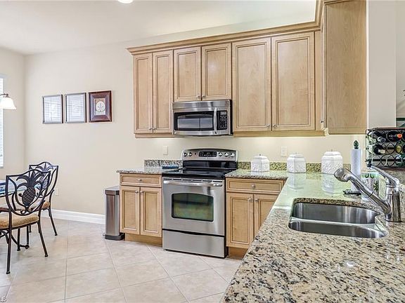 Immerse yourself in the luxurious lifestyle of Marbella Lakes with this exquisite TURNKEY-ready home, where every detail has been meticulously maintained to perfection. The Sorrento floor plan offers an inviting split-bedroom layout featuring 3 bedrooms, 2.5 bathrooms, and a 1-car garage sprawled across 2,143 sqft of living space. Whether you're seeking an idyllic winter retreat or a year-round sanctuary in sunny Naples, Florida, this residence caters to your every need. Crafted by GL Homes in 2011, this open-concept condo boasts an abundance of natural light streaming through numerous windows and wall-to-wall sliding doors, seamlessly blending indoor and outdoor living. Step onto the expansive covered screened lanai to savor breathtaking Waterviews, or gather with loved ones in the generously sized kitchen adorned with wood cabinetry, exquisite natural stone granite countertops, and an array of modern amenities including a coffee bar and breakfast nook. Entertaining is effortless with a spacious living room and a sizable formal dining room, perfect for hosting gatherings and creating lasting memories. Beyond your doorstep lies the prestigious Marbella Lakes community, where residents are treated to a wealth of amenities including a full-time lifestyle director, clubhouse, resort-style pool/spa, tennis and pickleball courts, basketball, billiards, and a fitness room—ensuring there's always something exciting to explore. Located just minutes away from Naples' premier shopping and dining destinations such as Mercato and Waterside Shops, as well as the vibrant downtown area and renowned beaches, Marbella Lakes offers the epitome of convenience and luxury living. Whether you're indulging in a day of leisure at Vanderbilt Beach or savoring culinary delights at Celebration Park, every moment in Marbella Lakes is filled with unparalleled excitement and adventure. Discover the essence of Naples luxury living and elevate your lifestyle in the captivating ambiance of Marbella Lakes—your dream home awaits!