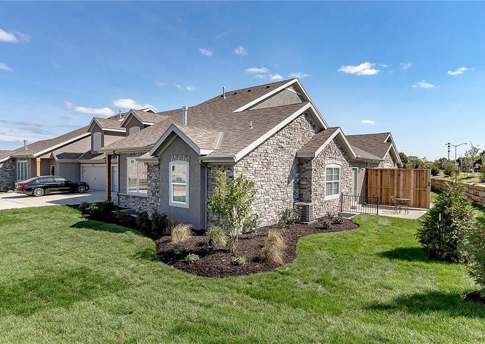 Shawnee's Newest Maintenance Provided Golf Community! The Greens of Chapel Creek Townhomes by Dreams and Designs is second to none. Open floor plan design with top tier finishes Quartz countertops*Upgraded Bosch appliances including refrigerator. walk in pantry w/grocery door to garage*main floor master bedroom w/tiled walk in shower & office*floor to ceiling stone fireplace*finished basement w/fam room, bdrm 3 & 4 tons of storage and bonus play area*Golf course lots available*Call Listing agent