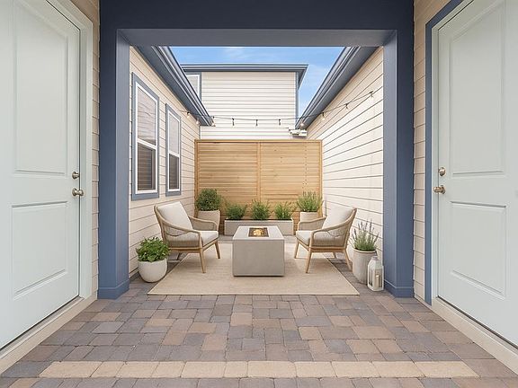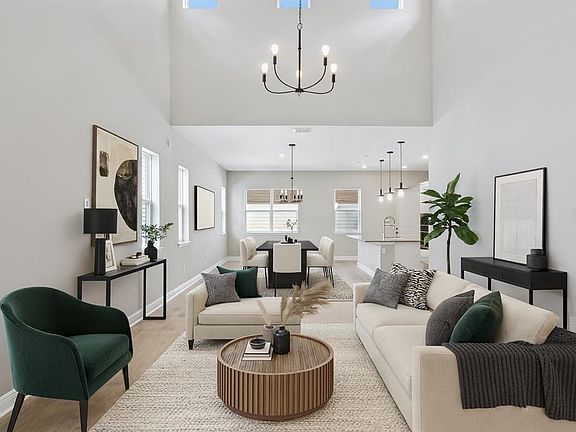One or more photo(s) has been virtually staged. 6553 Rover Way | Modern Comfort Meets Timeless Style in Weslyn Park*** Located in the sought-after community of Weslyn Park, this beautifully designed 3-bedroom, 2.5-bath Juniper floor plan combines modern finishes with everyday functionality all in 2038 sq ft. The open-concept floor plan showcases soaring ceilings, abundant natural light, and wide-plank luxury vinyl flooring that creates a bright and inviting feel throughout the main living areas. At the heart of the home, the chef’s kitchen impresses with white shaker cabinetry, quartz countertops, a large center island, stainless-steel appliances, designer backsplash, and a sleek vent hood, perfect for entertaining or casual family meals. The primary suite, located conveniently on the MAIN floor, features a spa-inspired bathroom with dual sinks, a frameless glass shower, and a walk-in closet that connects directly to the spacious laundry room for effortless daily living. Upstairs, you’ll find two comfortable secondary bedrooms and a full bath, ideal for family or guests. To help buyers ENVISION the full potential of this property, VIRTUAL INSPIRATION has been PROVIDED for both INTERIOR design options and creative courtyard and BACKYARD layouts, offering ideas to maximize and personalize every inch of indoor-outdoor living space. Additional highlights include an attached 2-car garage, covered breezeway entry, and energy-efficient construction. Weslyn Park residents enjoy access to community parks, walking trails, playgrounds, and the Marina Amenity Center, scheduled to open in 2027. Just a short walk away, you’ll find the A-rated K–8 school, making this home the perfect blend of convenience, design, and location, all just minutes from Lake Nona’s Medical City, restaurants, and shopping.