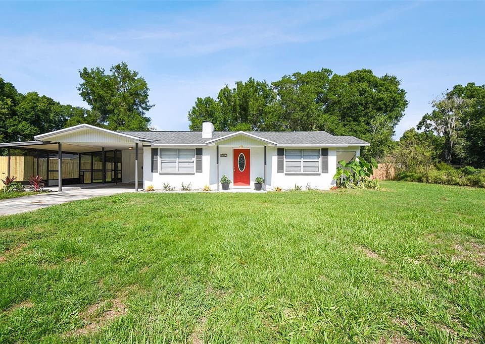 PRICED WAY UNDER APPRAISED AMOUNT- NEED TO SELL QUICKLY - this home has been completely re-plumbed with updated electric, fully passing 4 point inspection, new window and door and permitted for a new septic tank which will be put in after closing at sellers expense! The roof is 1 year old and AC is only 2 years old. This block SINGLE FAMILY HOME in Angus Valley on almost 1/2 acre with NO HOA and NO CDD- you can park an RV or Boat, have a fire in the winter, plant a garden or have your animals. No HOA restrictions!!! Backyard is completely fenced and front yard is massive with a circular turn around drive. This size lot within minutes of Groves, movies, shopping, restaurants and more! As you pull up, you will notice the massive front yard. You can either enter through the carport or the welcoming glass front door. Upon entry, you will find a wood burning fireplace and living space, along with a fully functional kitchen with painted cabinets, stainless steel appliances & pass through to the family room. There is space for dining table in conjunction with the kitchen. To the right, you will see the front bedroom, hall bathroom with tub and then the Primary bedroom with on suite bathroom and a walk in closet. The 3rd bedroom is opposite side of house off the large family room. Out back, is the separate storage shed building and enormous fenced in back yard. Make this your family's homestead retreat near booming area of Wesley Chapel, a convenient commute to Tampa or many other surrounding areas! Schedule a tour now!
