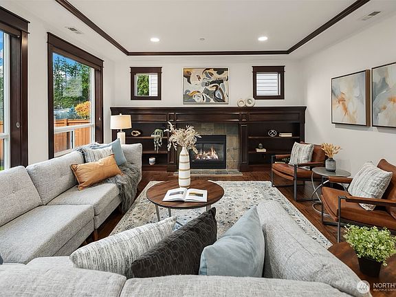 A charming covered front porch welcomes you to this stylish 2-story craftsman featuring rich hardwoods, new carpet, fresh interior paint, brilliant millwork, & generous windows that fill the home with natural light. The desirable floor plan includes a main floor den with adjacent ¾ bath; great room with gas fireplace, slab granite kitchen & a slider that opens to the patio; versatile 2nd floor bonus room/5th bedroom with closet & surround sound; vaulted primary suite with 5-piece bath complete with dual vanities, soaking tub, tile shower & walk-in closet. Enjoy peaceful outdoor living in the private, level & fully fenced backyard. Excellent location down a private lane near top-rated schools, community parks & freeways for an easy commute.