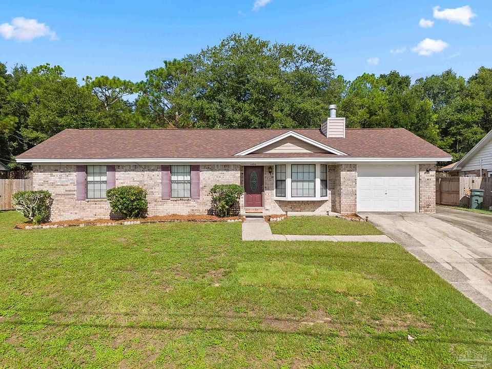 Priced below recent appraisal and Seller will assist Buyer with closing costs. Make this move-in ready house your new home! At its entrance, this home offers a cozy family room with a vaulted ceiling, a wood-burning brick surround fireplace, and a large bay window with bay window seating. This area adjoins the dining room with a ceiling fan and high-height wall-mounted cable connection, perfect for extending the family room fun into the dining room if you choose. Adjacent to the dining room is the kitchen with a breakfast bar, pantry, and newer appliances, including a range/oven and dishwasher. Moving down the hall, you'll find three generous bedrooms, one of which is the primary bedroom with a full bath. All bedrooms have energy-saving ceiling fans. Storage abounds in this house, with its three storage closets in the hall and a coat closet in the living room. The deep one-car garage and extended, extra-wide driveway offer ample parking. Outside is a covered back patio and a large privacy fenced backyard with a 12'X20' metal shed. A double gate makes the huge backyard of this home on a .30-acre lot very accessible. 2021 roof and 2024 water heater make for great insurance rates! A wonderful home, priced to sell; make your plans to tour it today.