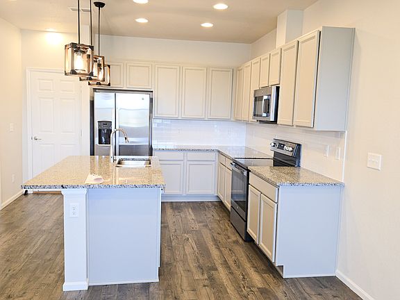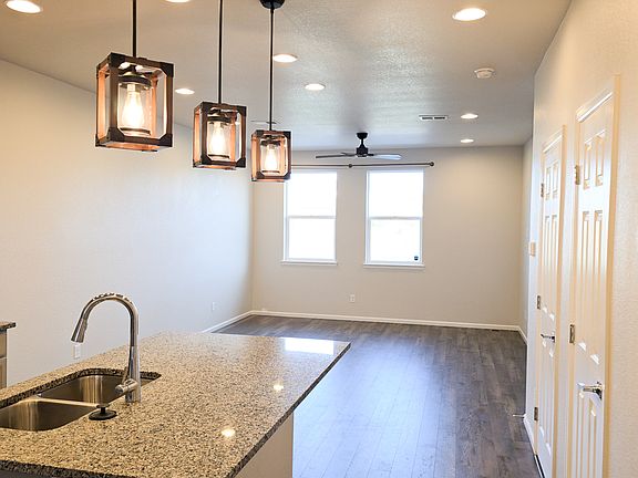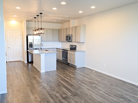 Step into this comfortable, bright, and airy 3-bedroom, 2.5-bathroom, 1,511 sq ft townhouse. This home overlooks a sprawling green space along Dunkirk Street. The main level features an open-concept layout with beautiful, luxury vinyl plank flooring. The living room and dining area seamlessly connects to the kitchen, complete with stainless steel appliances, an island, and half bath. A two-car garage is attached for easy access. Upstairs, the spacious primary suite offers a private bathroom and large walk-in closet. There are two additional bedrooms, a full bathroom, and laundry closet that completes the second floor. You will enjoy the energy efficiency of a tankless water heater and an abundance of natural light throughout the home.