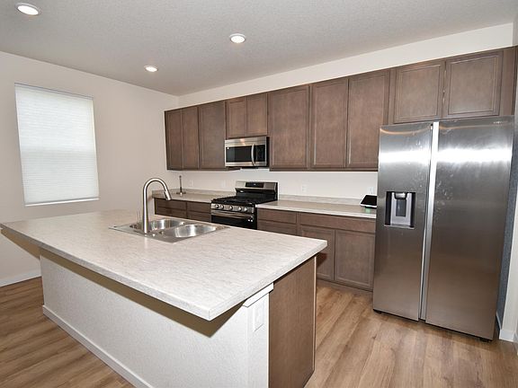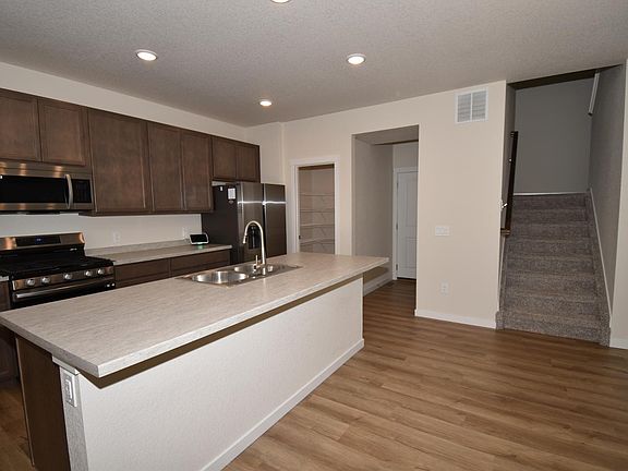 Newer 3 bed, 3 bath open-concept home located in The Hills in the Lorson Ranch area. Carpeted and vinyl flooring throughout the main level. Large windows flood the living room and kitchen/dining area with lots of natural light. Kitchen features a breakfast bar, island, stainless steel appliances. Office space comes with a walk-in closet, an ideal space for work. The upstairs includes carpeted bedrooms, laundry hookups, and a loft with a walk-in closet. Master bedroom adjoins to a private bath with a dual sink vanity, standing shower and a spacious walk-in closet. Close to shops, schools, entertainment, and about 20 mins away from Ft. Carson and Peterson SFB.