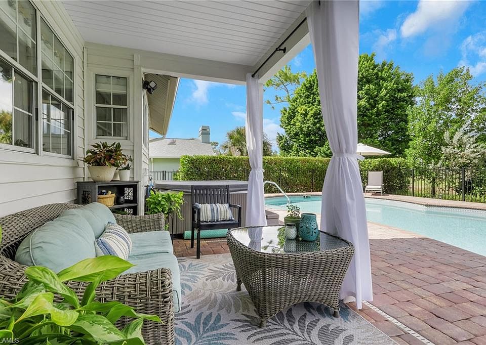 Modern finishesCozy fireCrystal-clear poolBreezy outdoor lanaiStylish comfortsLevelor shadesTongue-and-groove ceilings