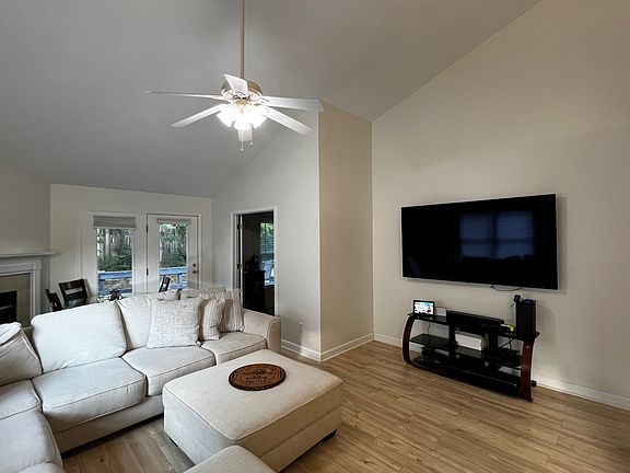 The heart of the home is the spacious living room, highlighted by a stunning vaulted ceiling and a cozy gas log fireplace. A dedicated office space/den is conveniently located just off the main living area. This versatile room can serve as a home office, library, or hobby space. Extend your living space outdoors with a wonderful deck perfect for entertaining, outdoor dining, or quite mornings. The second bedroom is ideal for a guest bedroom or a private second office/flex room.