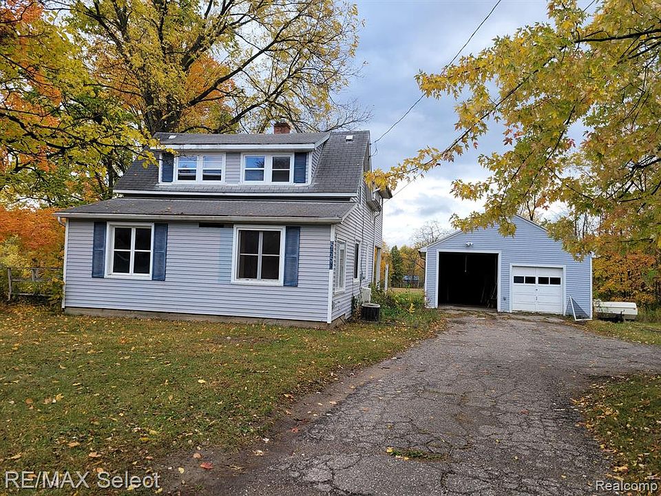 Flushing Schools, 4 Bed, 1 Bath, First floor laundry room. 2+ acres with extra large detached garage and large shed. Needs some TLC so cash only!