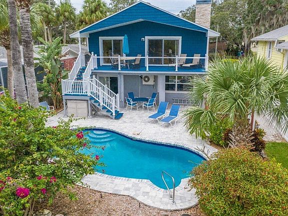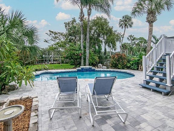 WATERFRONT HOME ON THE RIVER ALL READY FOR YOU....This 3 bedroom, 2 bath, OVERSIZED 2 car garage features large great room with wood burning fireplace dining room and kitchen overlooking the beautiful oasis back yard with pool and river... Walk out of the upstairs to the balcony...overlooking the river and pool..Bonus room downstairs with air and heat 650 sq ft....updates in home are dock with 12,000 lb lift, new garage door, windows updated, both bathrooms have been updated, adt alarm system, most receptacles and switches updated, high ceilings, pool was just redone and pavers, deck redone, siding and trip wrapped recently, fans, stainless appliances and cream cabinets in kitchen, washer and dryer, solar tube in both bathrooms, chimney redone with new top and more. Downstairs you have a large room behind the garage with a/c and kitchen sink and toilet so plumbing downstairs....patio with shed pool and lush landscaping...overlooking the river which is great location you can see up and down the river from this great spot....call today...