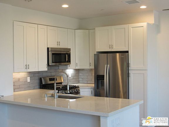 Like new home just completed in mid 2022. This is newer home that is 2 bed 2 bath home with lots of upgrades. The covered patio has mountain views and backyard is landscaped and fully fenced. Kitchen has LED lighting and quartz countertops, with stainless steel appliances. Vinyl luxury flooring is throughout the house. There is a tankless water heater and 12 fully paid and owned solar panels and that is a saving by it self. Home is Located on an interior corner lot within the gated community of Desert Willows. Desert Willow is an active 55+ community that offers pool, spa, workout room, sauna, tennis courts, clubhouse with billiards and kitchen.