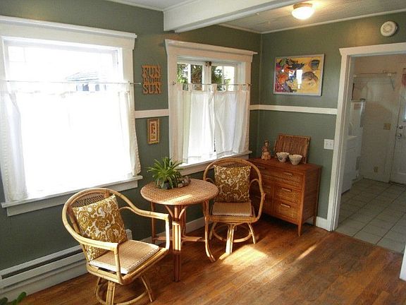 Sweet beach cottage dripping with charm! You'll love the box beams ceilings, hardwood floors, and vintage touches throughout. True knotty pine living room with wood burning fireplace, built in bookshelves, views, and small office nook. Darling picket fence and garden space. Vintage bath with claw foot tub. Enjoy the sunset from your front porch or take the short walk to the shared 126 feet of beach and sea wall (1/6th ownership). Full laundry/mud room. Parking for 2. Close to Lincoln Park.