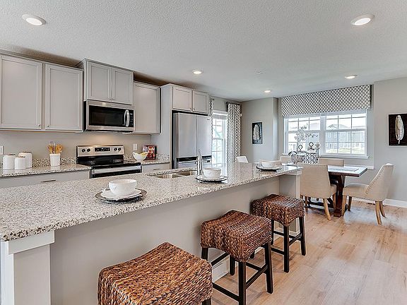 Ask how you can receive a 4.99% Conv/FHA/VA 30-yr fixed mortgage rate!!! This beautiful home features 3 bedrooms, 2 bathrooms & laundry upstairs including primary suite with walk-in closet. The finished lower-level flex room is perfect for guests, home office, or fitness. This home has a designer inspired interior package with white cabinets, expansive quartz island for 4-person seating, kitchen pantry, vented microwave hood and gas range. The open main floor has a 1/2 bath and is a perfect space for entertaining! All homes come with a HUGE deck, Smart Home technology, and high efficiency mechanicals. There is a walking path from the neighborhood to Cottage Grove Elementary and is part of #833 South Washington County School District. You can walk to the popular Junction 70 Grill, and are a short drive from shopping, entertainment, parks and more restaurants! HOA covers trash/recycling, exterior maintenance, lawn care, snow removal, insurance, and irrigation.