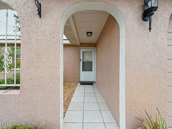 Step into this inviting 2-bedroom, 2-bathroom home with a one-car garage, where comfort meets modern updates and tranquil surroundings. A landscaped front yard and covered walkway lead to the front door, while a screened entry lets in the breeze. Inside, enjoy a freshly repainted interior (June 2025) with brand-new blinds, ceramic tile floors throughout, and new light fixtures and ceiling fans with remotes. The bright kitchen boasts quartz countertops, new white cabinetry, a stylish backsplash, an oversized sink with a peaceful view, and stainless steel appliances. The eat-in layout flows into a spacious dining area with sliding glass doors that open to a screened lanai and an adjacent concrete patio—ideal for relaxing or entertaining. The split floor plan offers privacy, with the primary suite featuring a walk-in closet, walk-in shower, and new vanity. The second bedroom includes a built-in closet and access to a fully updated guest bath with a refurbished tub/shower combo, new toilet, vanity, and additional storage. The backyard is fully fenced with gate access and includes a shed (no electric), lush greenery, and serene views of the adjoining Boy Scout preserve—providing a peaceful, natural backdrop. A new drain field was installed two years ago for the septic system. The washer and dryer, located in the garage, convey with the home. Conveniently located just 7.6 miles from the Suncoast Parkway for easy access to Tampa, and close to Weeki Wachee Springs (7.2 mi), Delta Woods Park (2.1 mi), and Pine Island Beach (13.6 mi). Seller prefers no specific title company; Republic Land & Title is default.