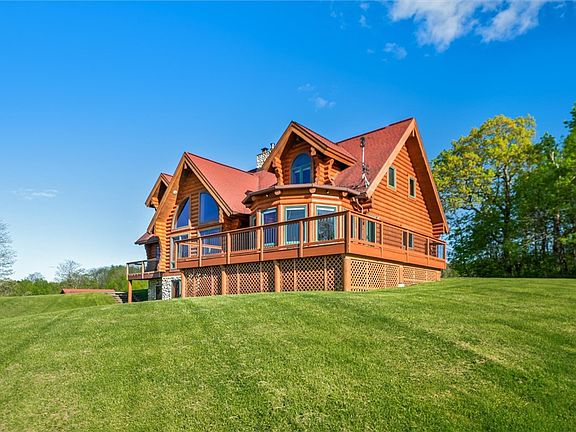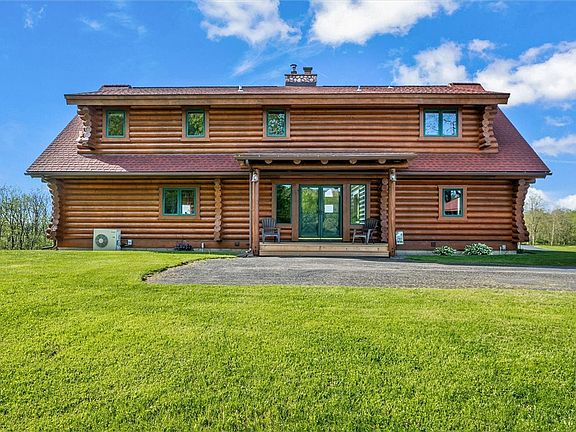 Welcome to your private retreat in the heart of the Finger Lakes! This stunning 4,438 sq ft custom log cabin home offers the perfect blend of rustic charm and modern comfort, nestled on 17.6 serene acres just minutes from Canandaigua Lake. With 5 spacious bedrooms and 3 full bathrooms, there’s room for everyone to relax and unwind. The beautifully updated kitchen features elegant quartz countertops, an oversized island, and a cozy eat-in area, while the formal dining room is perfect for hosting gatherings. Soaring ceilings and expansive windows flood the home with natural light and frame breathtaking views of the surrounding countryside. Step out onto the spacious deck to enjoy morning coffee or sunset dinners overlooking your private slice of paradise. The finished basement provides additional living space, ideal for a family room, gym, or home office. This one-of-a-kind log home delivers comfort, space, and unmatched tranquility. Don’t miss the opportunity to own this extraordinary property in the Canandaigua countryside! Delayed negotiations until 5/27 @ 2pm.