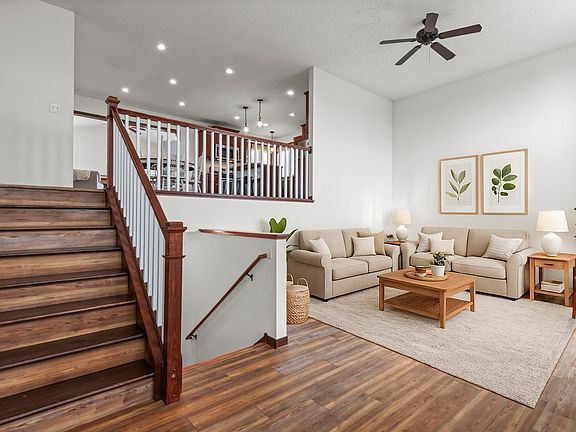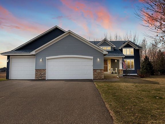 Located in one of Hugo's most desirable locations, Diamond Point East, on a premium homesite backing up to your own private setting with views off your deck to the west providing the ultimate sunset. This 2010 built 4 bedroom 2 bath oversized 3 car garage multi level home with roof and siding as new as 2022 offers plenty of room to grow in the partially finished walk out lower...whether you are taking in that sunset from your 4 season porch/addition next to a cozy fire or from the kitchen window, you will be hard pressed to find a better opportunity. Preferred layout with 3 bedrooms on 1 level including a primary suite with private bath, kitchen with center island and stainless steel appliances overlooking main floor family room and a lower level 4th bedroom with rough in for a 3rd bath. Truly a must see home and sure to sell quick in this school district.