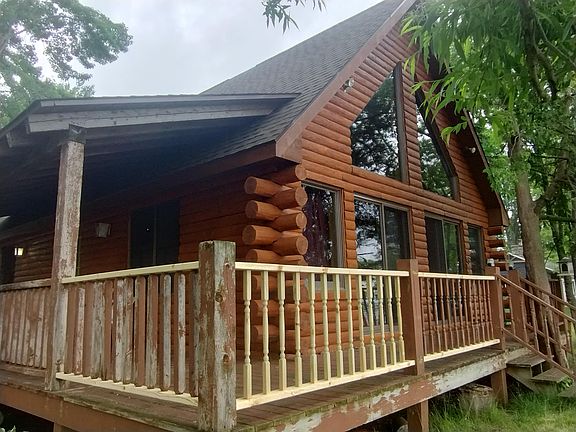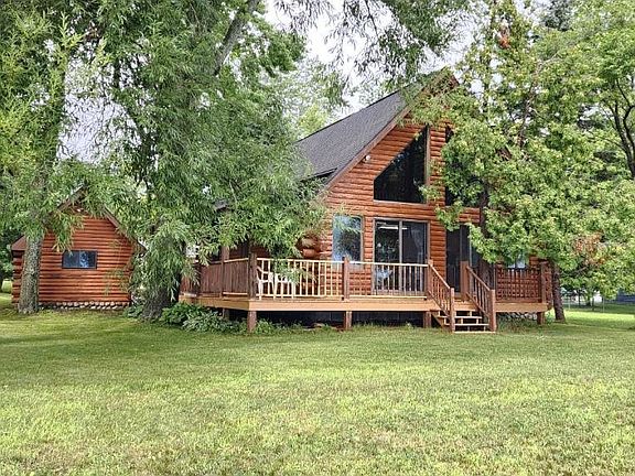 Looking for a getaway? This well built, Full log looking home has got it. Wow. spacious living room that is tongue and groove and open concept kitchen lets the cook of the house be part of the goings on. The two large bedroom, two bath home with partially covered wrap around deck, features open concept, cathedral ceiling with loft style bedroom overlooking the waterside, and wonderful window wall with sliders to the deck. It is just steps away to Lake Huron and the sandy shoreline and rhythmic waves. Deck railing will need repair, as well as flooring updates. The crawl space is impressive. Detached one car garage, and also one bedroom guest cottage up front that needs a little help. Do the work and you will have a nice guest cottage or renta