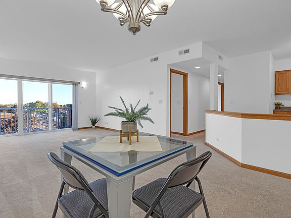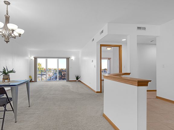 This spacious and bright top floor unit has 2 bedroom and 2 baths . It is located in a newer building in the desirable Park Avenue Luxury Condominium complex. It features an open layout with wall-to-wall carpeting throughout and two balconies facing a side street - perfect for relaxation or entertaining. The primary suite offers a generous walk-in closet and a large marble-tiled bathroom. The open kitchen has room for the table and ample cabinet space. Great-size coat closet by the entrance provides extra storage. Enjoy radiant floor heating and a supplemental forced-air system. Individual air conditioning unit is located on the roof. Additional features include in-unit laundry, heated garage parking (#103), and private storage (#103) conveniently located in the garage. Additional parking spaces are offered in front and behind the buildings. Two elevators are installed for convenience. This is a pet-friendly and rentable complex situated near shopping, Metra station, schools, parks, businesses and restaurants. A CTA bus stops are located right by the complex and traffic lights help with and easy access to the complex. Property is being transferred "as is". Schedule your private showing today.