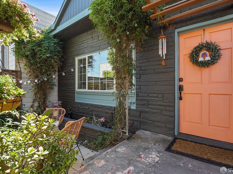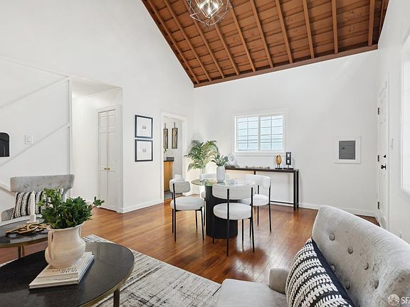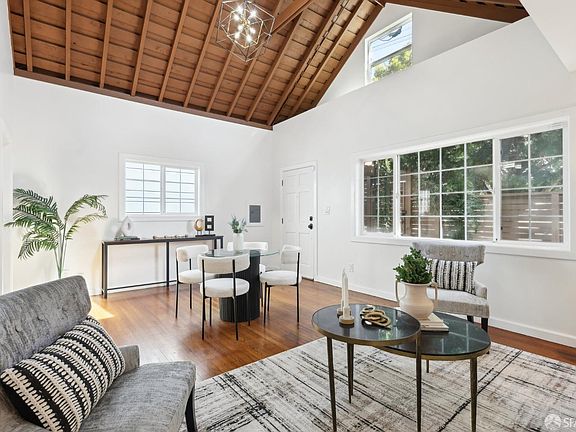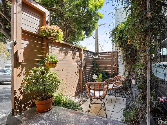 Assumable loan at 2.625%. Charming Semi-Detached Home with Privacy and Convenience. Discover the perfect blend of comfort and tranquility in this 2-bedroom, 1-bathroom home. Enclosed by elegant cedar fences, the front yard features a jasmine-covered arbor and twinkling bistro lights ideal for quiet moments or intimate gatherings. Inside, an open-concept living and dining area with vaulted ceilings creates a welcoming space, while the updated galley kitchen, featuring a chef-inspired Forno 6-burner stove, invites culinary adventures. Both bedrooms are bathed in natural light, and the remodeled bathroom boasts a bright skylight for a refreshing ambiance. Practical amenities include a laundry area and pantry, but the real gem is the private outdoor oasis. Enjoy al fresco dining, weekend barbecues, and relaxation in your very own sauna. The lush backyard, adorned with mature trees, offers ample space to cultivate your green sanctuary. Easy access to highways 101 & 280 and Alemany Farmer's Market.