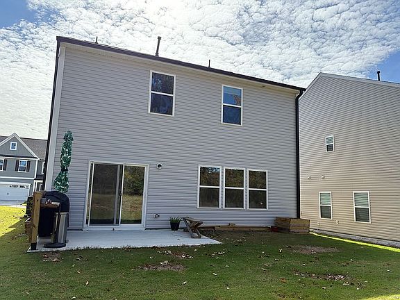 Welcome to your dream home! This stunning two-story home offers the perfect blend of modern upgrades, open living spaces, and peaceful surroundings. Nestled in a quiet, friendly community, this home provides both comfort and convenience—close to local gyms, stores, and restaurants. Step inside to find engineered hardwood floors throughout, creating a warm and elegant feel in every room. The spacious living room flows seamlessly into a gourmet kitchen that’s perfect for enthusiast of cooking. Enjoy cooking with double convection ovens, an electric induction cooktop, tall cabinets for extra space, a built-in trash can, a large marble island and countertops, a big pantry, and an upgraded three-tray dishwasher for effortless cleanup. Upstairs, you’ll find four spacious bedrooms and 2 beautifully appointed bathrooms, offering plenty of space for family and guests. The two-car garage is fully finished with an epoxy-coated floor and fresh paint, adding a clean, polished touch to your storage. Relax outdoors on the 15x10 concrete patio slab, where you can enjoy your morning coffee while taking in the private views of the woods behind the home.