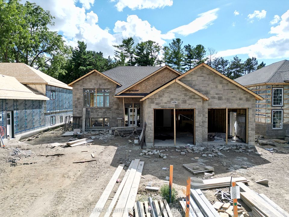 On a lot measuring 56ft x 182 ft, this 1406 sqft, 3 + 2 bedroom, 3 bath home is under construction. The location is 656 Devonshire Road in Port Elgin just a short walk to the rail trail, Food Basics, and the new Saugeen Shores Aquatic Center. The main floor is open concept with 9ft ceilings, vinyl plank and ceramic flooring, walkout to a 10 x 14 deck, Quartz kitchen counter tops and spacious entrance foyer. The basement will be finished and include a family room with gas fireplace, 2 bedrooms, 3pc bath, laundry / utility room with access to the 2 car garage measuring 22'8 x 24'. The yard will be completely sodded and a concrete drive will be in place. HST is included in the list price provided the Buyer qualifies for the rebate and assigns it to the Builder on closing. Prices subject to change without notice.