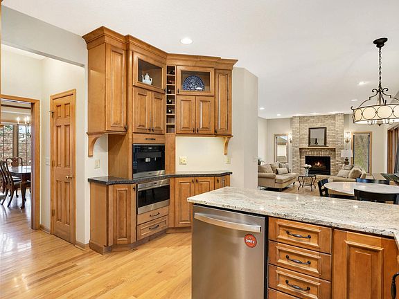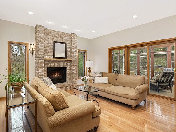 Conveniently located near 694, with easy access to shopping, restaurants, and everyday amenities, this beautifully updated home sits on a quiet cul-de-sac and offers over half an acre of professionally landscaped privacy. Just minutes from Vadnais-Snail Lake Regional Park, you'll enjoy access to over 1,250 acres of scenic woodlands and lakes, complete with miles of biking, hiking, and cross-country ski trails. Nearby Snail Lake Park also offers a boat launch, playground, swimming beach, walking trails, and picnic areas—perfect for outdoor recreation year-round. Located within the highly sought-after Mounds View School District, this home offers the perfect balance of comfort, convenience, and outdoor living. The heart of the home is a chef-worthy kitchen featuring maple cabinetry, a blend of granite and quartzite countertops, a spacious walk-in pantry, and high-end appliances including a Wolf range and microwave plus a built-in Miele coffee maker. The main level also features a spacious formal dining room, a dedicated office, a laundry/mudroom with tile flooring and built-in storage, and a marble-tiled foyer leading to a convenient half bath. Rich hardwood floors run throughout the main level, creating warmth and continuity. A sun porch offers a quiet, light-filled space to relax. Upstairs, you’ll find three bedrooms on one level, including a spacious owner’s suite with a private bath and deck overlooking the backyard. A remodeled ¾ bath serves the additional bedrooms. This versatile bonus room above the garage provides endless possibilities—perfect for an entertainment suite, art studio, craft room, or any space to suit your lifestyle. The walkout lower level includes a fourth bedroom with a remodeled ¾ bath, ideal for guests or use as a home gym. It’s also a great space for entertaining, with a wet bar, cozy living area, and direct access to the private, tree-lined backyard. With ample storage throughout, this home truly combines functionality with thoughtful design. If you're looking for a well-appointed home in a peaceful, nature-filled setting - just minutes from schools, trails, parks, and everything Shoreview has to offer - this is the one.