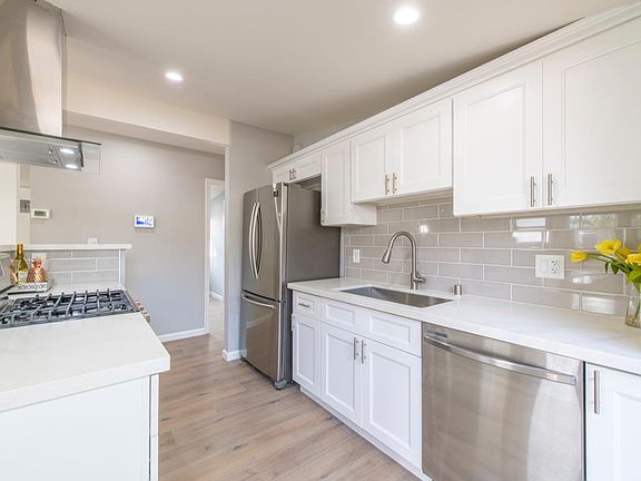 Welcome to this elegantly remodeled Mid-Century Modern home in prime Santa Clara location! This newly updated home boasts 4 spacious bedrooms and 2 gorgeous bathrooms and is nestled on a quiet, family-friendly, tree-lined street. Open layout and bright living room with lots of sunlight. NEW wood floors and NEW interior and exterior paint. NEW kitchen features custom cabinets, stunning counter tops and stainless steel appliances. Enjoy NEW bathrooms with contemporary design, floating vanity and beautiful modern tiles. NEW roof and NEW landscaping. This fantastic home also offers NEW double pane windows, NEW lighting fixtures, NEW modern electric fireplace and many more designer touches. Walking distance to Homeridge Park and top ranking Santa Clara elementary schools Sutter Elementary and Millikin Elementary (lottery school, public). Easy access to freeways and many Silicon Valley companies such as Apple and Kaiser. Must see!