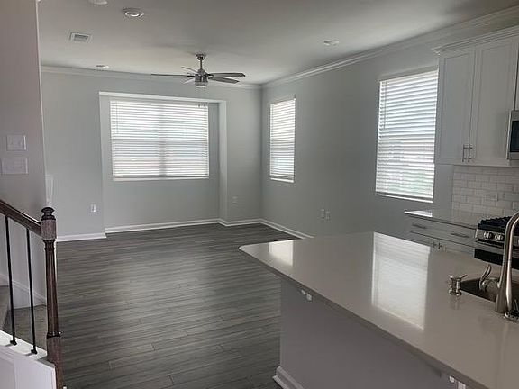 You will absolutely love this stunning - END UNIT - 3 bedroom 3.5 bath - THREE LEVEL home in Devon Square community! RING DOORBELL includes camera at entrance and security system on doors and windows. Also, WITH KEYLESS ENTRY. It has a convenient FIRST FLOOR MOTHER-IN-LAW SUITE with spacious, private bedroom and full bath exiting to the garage. The second floor has an open concept kitchen, dining room and living room with half bath. The cedar bark STAINED deck enjoys a BEAUTIFUL VIEW OF THE SUNRISE over E. Carroll Joyner park and surrounding enchanted green forests. The kitchen is adorned with DIMMABLE PENDANT LIGHTS, all stainless steel appliances and granite countertops! There is a beautiful island and gas range with skillet top for meal prep! The third floor has a spacious master bedroom with it's own master bathroom with double vanity, walk in closet and beautiful glass shower. The large 2nd bedroom also has a walk in closet and full bath. The finished - FULLY PAINTED ONE CAR GARAGE - is large enough for plenty of storage. Two car spaces at drive-way with additional one car space in front of unit. CEILING FANS AND MINIBLINDS THROUGHOUT!! The large pool and clubhouse are only steps away. The community has a greenway connection to Joyner Park - WITHIN WALKING DISTANCE TO GYM - where the fitness center including indoor walking/running track and weight lifting room is available for you and your family's use. Don't miss out on this amazing opportunity to live in a truly gorgeous home in a family friendly community. Contact us today to schedule a showing beginning August 6.