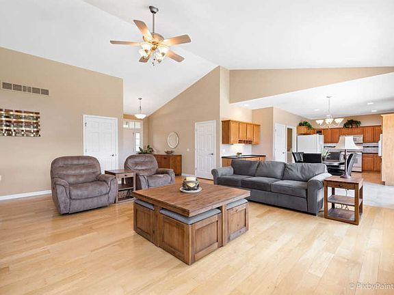 Here it is! This beautiful custom built ranch has 3 beds, 2 baths, RARE 3.5 car (heated) garage, and over 1,700 sq ft! Light and bright open-concept living area has neutral paint, cathedral ceilings, cozy gas fireplace and gorgeous hardwood floors that carry throughout the entire home! Updated kitchen boasts ample cabinetry, granite countertops, custom backsplash, built in desk area, and huge dining space. Gigantic master bedroom has HW floors and en suite bathroom with walk-in shower, separate dual vanities, and walk-in closet. Additional two bedrooms are down the hall and have easy access to second, updated full bath - perfect for guests! Large basement (with bathroom rough-in) is a clean slate and ready for your finishing touches! Main level laundry room is spacious and conveniently located off the garage. Enjoy your outdoor space with low-maintenance trex deck and remote control awning! Over-sized lot (0.3 acres) backs up to park area with huge green space. Walk to Dekalb High School. Just minutes to NIU, shopping, dining and I-88! TV in great room and electric fireplace in guest bedroom both stay. Nothing to do but move right into this low maintenance home! AGENTS AND/OR PROSPECTIVE BUYERS EXPOSED TO COVID 19 OR WITH A COUGH OR FEVER ARE NOT TO ENTER THE HOME UNTIL THEY RECEIVE MEDICAL CLEARANCE.