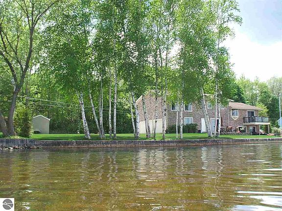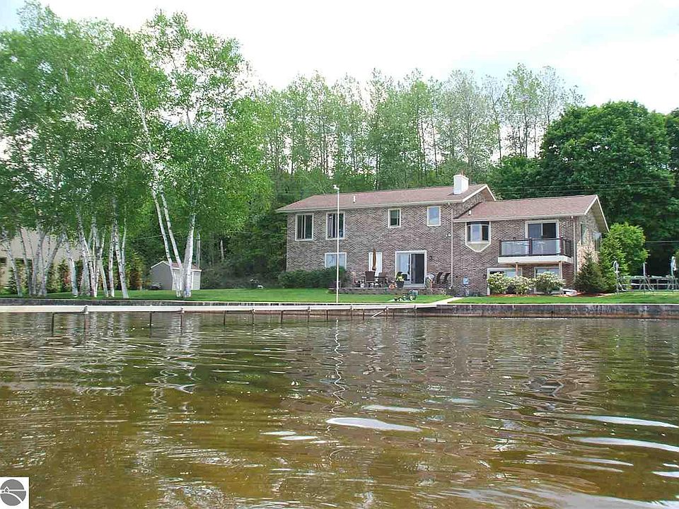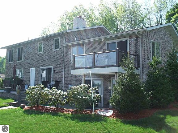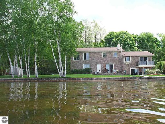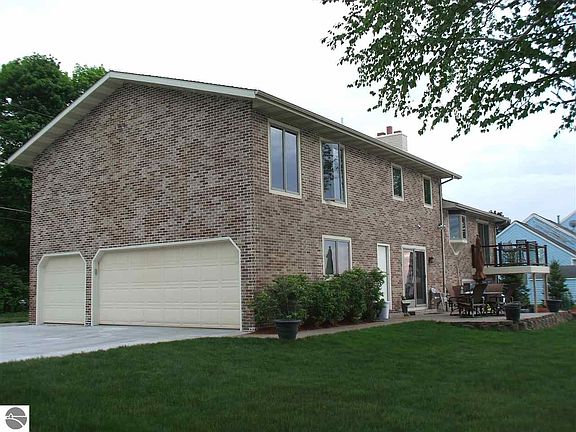 Beautiful well cared for home on a gorgeous lot with over 149' of frontage! The elevated views from everywhere in the home are just outstanding! To the south, you see nothing but trees, to the north the lake, and to the northwest the beautiful Summer sunsets. This magnificent brick home is extremely well maintained, immaculate, and ready to be enjoyed! With 3,164 square feet, 4 bedrooms, 2.5 baths, and a finished walk-out basement, this home will accommodate a lot of people and is ideal for entertaining! Included is a beautiful brick fireplace, large basement game room with wet bar, maintenance free balcony, multi-level patios, sprinkler system, 3-car garage, dock, seawall with side walk, and a nice sandy lake bottom. Located near the White Pine Trail for biking and walking, and within walking distance of downtown Cadillac.