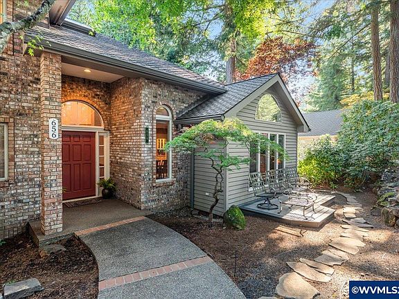 Located in one of South Salem’s most coveted neighborhood, "The Woods". This private home on a .33 acre lot features vaulted ceilings, custom built-ins, and a timeless layout. 3 bedrooms + den/4th, 3 baths, 3,227SF plus 1,016 SF finished basement with a bonus room, wine cellar and 4-car garage. Family room with fireplace opens to a large deck overlooking a wooded creek. Spacious bedrooms, abundant natural light, creek frontage, garden area across the creek w/walking bridge and space to enjoy by all.
