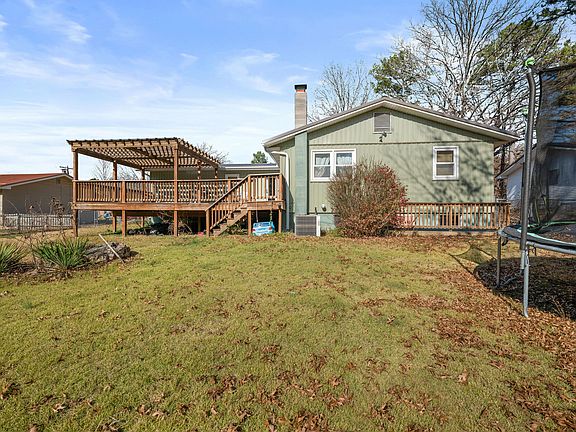 Absolutely adorable single level home exudes a farmhouse feel with modern touches sprinkled throughout! From the sage green exterior (THE singlemost popular color right now in homes), the sprawling covered front porch engages thoughts of summer front-porch-lemonade-sippin'. The cedar posts and native rock accents coordinate handsomely with the maintenance-free metal siding and roof. Just inside, an enormous living area provides plenty of space for entertaining, but the masterfully planned kitchen is where you'll want to hang out! Featuring warm, neutral upgrades, including glass-front cabinetry, granite-look countertop and backsplash, and an eat-in kitchen that could double as a hearth-style cozy living area. Formal dining just off the kitchen boasts plenty of space for all the friend and family gatherings you'll host this season. A direct pathway through the dining room leads to a second living area, where natural light gleams off the newer laminate flooring. Just out the back sliders, the gorgeous pergola-topped deck overlooks the enormous backyard, with above-ground pool and deck surround. Make memories all summer long! So many thoughtful updates that lend themselves to little-to-no maintenance make this one THE ONE you don't want to miss! See it today!