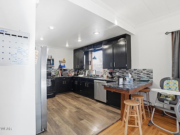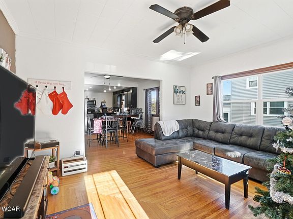 Welcome to this inviting 3-bedroom, 2-bathroom home offering 1,424 square feet of open-concept living in the heart of Bluffton. Nestled along picturesque Main Street, this home blends small-town charm with modern convenience—just a short stroll from local shops, parks, and community events. Inside, you'll find a beautifully updated kitchen with newer appliances, refreshed lighting, and a layout that flows effortlessly into the dining and living areas—perfect for entertaining or everyday living. Rich hardwood flooring adds warmth and character throughout, while built-in storage and spacious closets on the main level enhance functionality. Upstairs, a private retreat awaits with a generous bedroom, walk-in closet, and a full bathroom featuring a relaxing garden tub. Both bathrooms have been thoughtfully updated for modern comfort and style. Step outside to enjoy peaceful mornings on the covered front porch or unwind on the back deck with tranquil views of the pond. A full basement offers ample space for storage, hobbies, or future expansion, and the 2-car garage includes a bonus area ideal for a workshop or extra gear. With central air and a mini split system upstairs for year-round comfort, timeless curb appeal, and a location that captures the heart of Bluffton, this home is ready to welcome you.