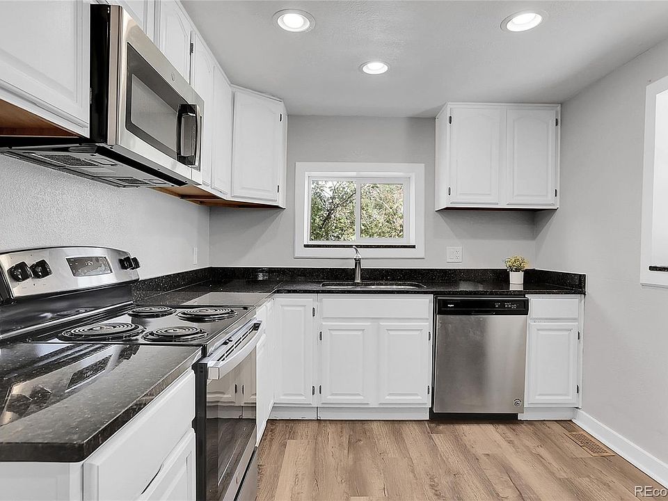 Westwood adorable, upgraded, Ranch style home ready for you! Square footage feels much larger. Vinyl plank flooring throughout, neutral colors, all clean and fresh. Two good sized bedrooms and a full bath. Light and bright, good use of space, square footage feels much larger with this floorplan. Granite counters, stainless appliances, all included. Updates include a tankless hot water heater, newer shed, concrete driveway, newer gate for parking access directly into the backyard. Enjoy your private backyard with a large, covered patio. Discover this Southwest Denver neighborhood, known for Westwood's Chili Fest, numerous restaurants, community centers and parks are all within walking distance. Property is zoned for a 2-unit, possibility of a duplex, rental income, expansion.