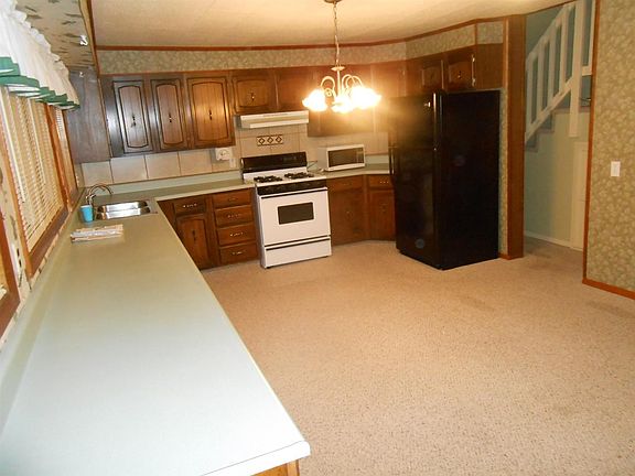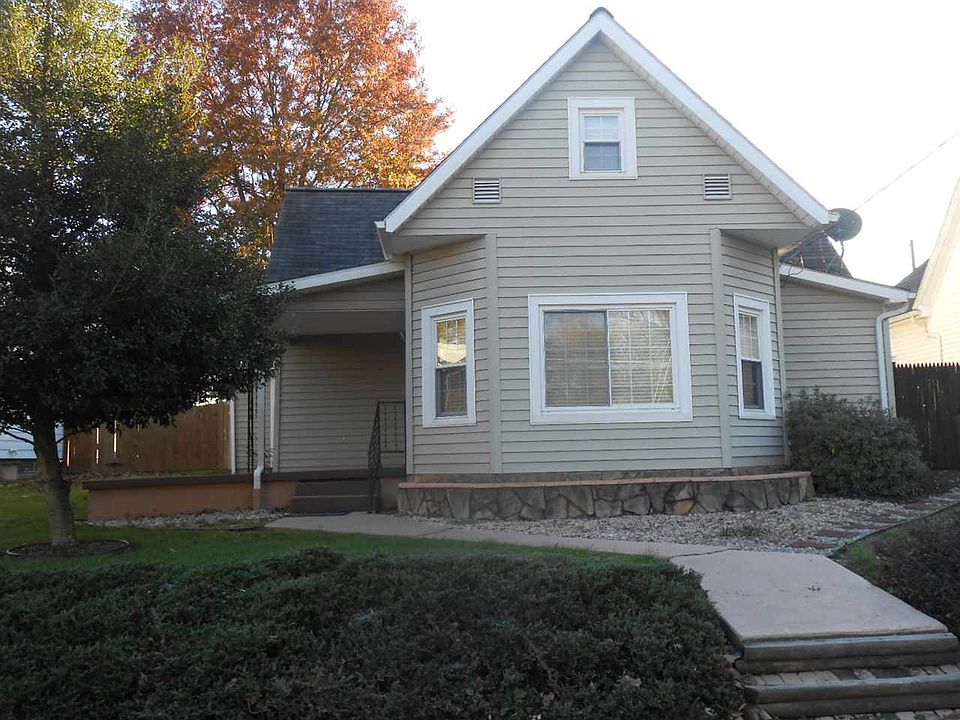 A lot of Curb Appeal with this 3 bedroom (with room for more), 1 full bath, 1 1/2 story house. Nice Siding and replacement windows all throughout. The property sits on 2 lots that have been joined into 1 for less taxes. Fenced in back yard and covered brick patio. 2 car detached garage with storage and potential to have much more room for storage. Plenty of parking in the long double drive. Could use some updating but equipped with all the appliances you would need.