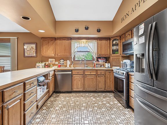 Introducing this promising split-level home with a fantastic layout that offers great potential, but it requires some updating and cleaning to truly shine. With a full kitchen on each level, it's perfect for accommodating in-laws or generating rental income, or just entertaining, but a little TLC here will go a long way. The home is larger than it appears, with 3 bedrooms and two full bathrooms upstairs, and the 4th bedroom and 3rd bathroom on the lower level. There is also a separate rec room with a full dry bar and entertaining area. The solar panels are transferable and a fantastic feature that can significantly reduce your energy bills to approximately $15 for three months, but the home could use some modernization to maximize its efficiency. While the windows, siding, and roof have been updated in recent years, some areas may still need attention. The furnace and AC units were replaced in the last three years, ensuring the essentials are in good shape. The kitchen appliances are new, offering a great starting point for creating a fresh and inviting cooking space. The garage has an oversized 9 ft door, and the yard is fully fenced with a large deck and shed. Near all major expressways, this home is a gem waiting for a bit of love and attention.