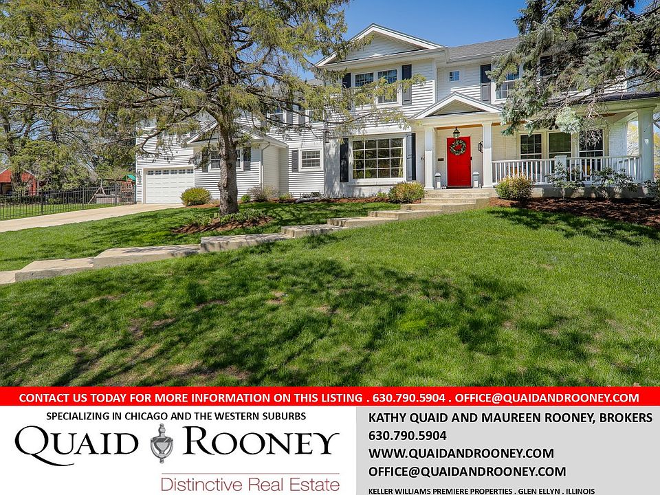 LOCATED IN THE REVERE ROAD AREA, ONE OF GLEN ELLYN'S MOST PRESTIGIOUS NEIGHBORHOODS! 2010 EXPANSION/ REHAB 5 BEDROOM 3.1 BATH HOME ON A 70X161 LOT, BOASTS A VERSATILE FLOOR PLAN FOR FORMAL OR CASUAL LIVING + NEW ROOF & SIDING 2019. FIND ON-TREND STYLING WITH WELCOMING COVERED FRONT PORCH, 1ST FLOOR BEDROOM/OFFICE WITH ADJACENT FULL BATH. LARGE LIVING ROOM W/WOOD BURNING FP, FORMAL DINING. EAT-IN KITCHEN WITH BANQUETTE SEATING, WET BAR W/WINE FRIDGE & LIGHTED DISPLAY CABINETS, SEATABLE ISLAND & DRURY DESIGNED CHEF'S KITCHEN + MUDROOM WITH ACCESS TO ATT 2 CAR GARAGE. PAVER PATIO FOR BARBECUE OFF KITCHEN + 2ND PAVER PATIO IN FENCED LANDSCAPED YARD WITH PLAYSET. NEWLY FINISHED BASEMENT HAS LARGE RECREATION ROOM, PRIVATE RM WITH MURPHY BED (CURRENTLY USED AS 2ND OFFICE) + ADJACENT HALF BATH & RENOVATED LAUNDRY RM. 2ND FLOOR HAS FABULOUS BIRDS-EYE VIEW FAMILY ROOM/ BONUS ROOM WITH STAIRCASE TO KITCHEN, LOVELY MASTER SUITE, 3 ADDITIONAL BEDROOMS & HALL BATH. DUAL ZONED HVAC. EASY STROLL TO TOWN, TRAIN, SCHOOLS, PARK AND POOL. BEN FRANKLIN ELEMENTARY.