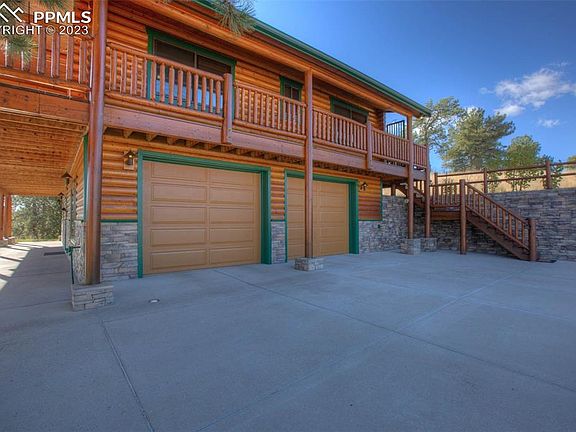 This Colorado log home is move-in ready and meticulously maintained. Log chinking inside and out. Enjoy all main level living space with walkouts in the great room and primary bedroom. You will enjoy the stunning sunrises and Pikes Peak views from your wrap-around covered deck. Inside, the open and spacious floor plan with 14' vaulted ceilings, big windows, and natural light create a welcoming ambiance. The main level boasts a large primary bedroom and guest bedroom along with primary main level bath. Head downstairs to an entirely furnished private suite with full kitchen, living space, bath, and two bedrooms. High-speed internet and excellent cell service are already in place. Outside, a massive insulated 30X40 Cleary shop provides space for your business or hobbies, with double automatic doors for your RV, boat, and ATVs. 100% usable land, 20.83 acres are partially fenced and zoned for horses. Nature lovers will appreciate the private community spring for extra water needs, and hunters and anglers will love the proximity to Eleven Mile Reservoir, BLM, GMU, and Pikes Peak National Forest land. Abundant wildlife, including deer, elk, and two prong. Star-studded nights, clean air, and sunshine. For entertainment, dining, or shopping, Cripple Creek is 25 minutes away, while Woodland Park and Canon City are both 45 minutes away. The nearby town of Guffey offers community, schools, and dining. And, with an hour's drive to ski resorts, this is true Colorado mountain living with all the conveniences of modern life. Don't miss out on this rare opportunity!