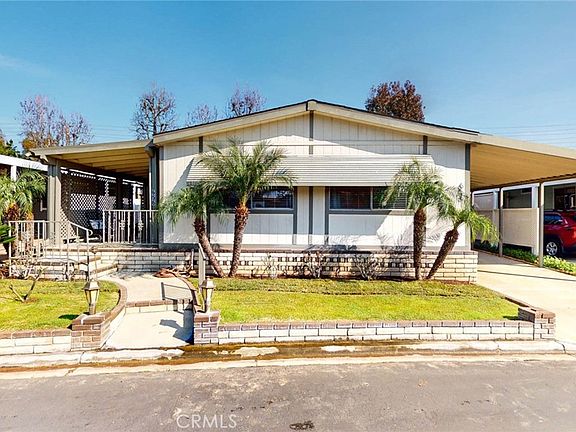 This updated triple-wide home is located in the beautiful 55+ community of Lake Park Brea. The home features 1,700 sq ft of living space, an extra large master bedroom and bathroom, a large secondary bedroom, and a secondary bathroom. The entertainer's kitchen has new granite countertops, soft close drawers and accents throughout. Enjoy the peace of mind of a brand new roof! The Secondary bathroom has been redone with a walk-in Shower. The home features an eat-in kitchen, a dining room, a formal living room, and a separate family room. BRAND NEW HVAC system and wood flooring throughout the home and BRAND NEW appliances that are staying with the home. Front and rear patios are ready to enjoy that glass of wine or cup o' Joe. The master bathroom has a separate bathtub and shower as well as dual sinks. The large storage shed located to the rear of the carport is included in the sale and has had the floor replaced. The carport has room for two cars and across from the home is additional parking for guests. The park features a pool/spa, clubhouse, and lake stocked with fish. The clubhouse is available to host special events.