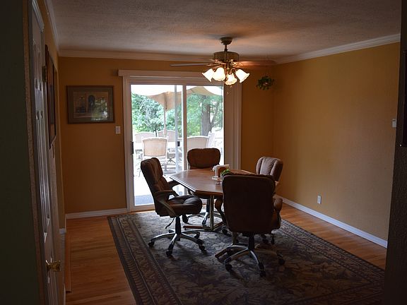 I car attached garage, Food Storage room, Pantry, granite kitchen counter tile and floor, Large Master Bedroom, Separate detached metal Pole Barn two garage doors, New Detached 22x34 Garage with finished A/C heated and cooled overhead office and deck that serves as a double carport, garage doors front and back. Circle Cement Double Driveway, Rear cement pad behind garage. irrigation water with storage tank. no hoa fees. 30x50 Pole Barn
