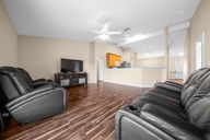 - Cathedral Ceiling(s), Ceiling Fan(s), Eating Space In Kitchen, Kitchen/Family Room Combo, Open Floorplan, Solid Wood Cabinets, Walk-In Closet(s)