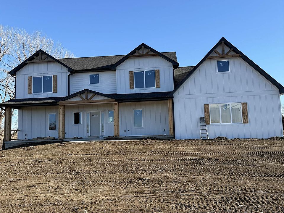 Stunning modern farmhouse offering 6 bedrooms, 5 bathrooms, 3 laundry rooms, and a 3.5-stall garage. Designed for everyday living and entertaining, this home features a fully covered patio, dramatic two-story foyer, oversized mudroom, and walk-in pantry with prep countertops. Open-concept kitchen and dining area showcase a two-story natural rock fireplace with catwalk overlook and abundant natural light with scenic countryside views. The primary suite includes a spa-like bathroom with walk-in river rock shower, soaking tub, and a walk-in closet with private laundry. Upper level offers four bedrooms, two bathrooms, and an additional laundry room. Finished lower level features 9-foot ceilings, side walkout, wet bar, second natural rock fireplace, large living area, bedroom, bonus room, bathroom, laundry, and ample storage. Modern farmhouse design with thoughtful details and serene country views throughout. Built by MPI Custom Homes Inc.