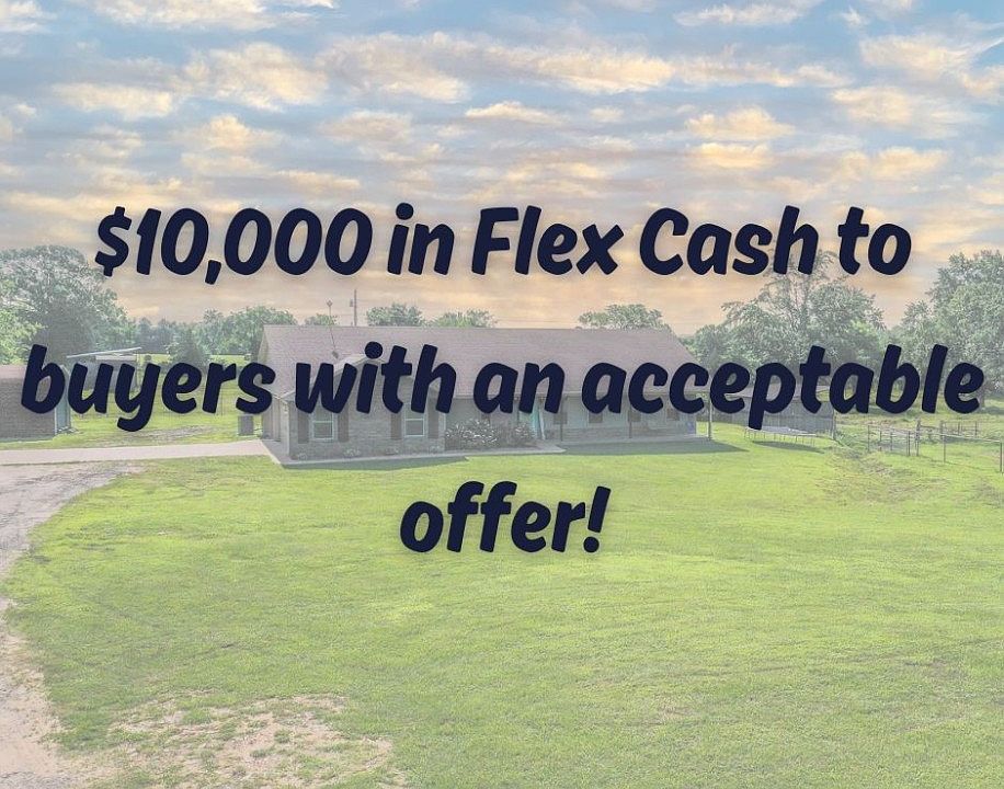 ***Up to 10K flex cash available with acceptable offer*** Enjoy peaceful country living just minutes from all the conveniences you need! This spacious home offers four bedrooms and two bathrooms. The split floor plan features a large primary suite with a walk-in shower and relaxing soaker tub. You'll love the open-concept layout with a cozy fireplace, oversized garage, and bonus storage building—all situated on approximately 4.29 beautiful acres. This property includes a 220'x140' sandy loam riding arena complete with lights!