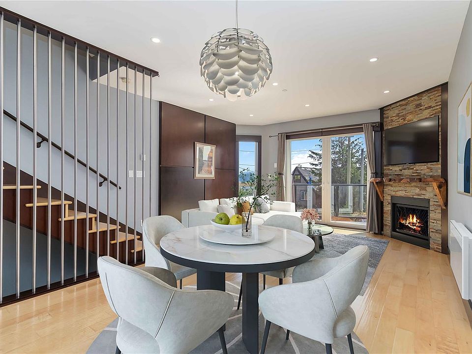 Welcome to Mariner’s Village, a 3 bed, 3 bath townhome offering panoramic south-facing ocean views in front and a peaceful canyon water feature behind. The open-concept main level showcases maple hardwood floors, a gourmet kitchen with stone counters and stainless steel appliances, plus French doors to both an ocean-view deck and private patio with built-in BBQ. Originally finished for the developer’s personal residence, this home features elevated design details and thoughtful upgrades, including UV-blocking window film, new sliding door coverings, and a fully customized garage with a “man cave” and urinal. Upstairs, the primary suite is a true retreat with a spa-inspired ensuite, freestanding tub, heated floors, separate shower, and a three-way gas fireplace. A rare opportunity to own one of Mariner’s Village’s most unique and refined homes.
