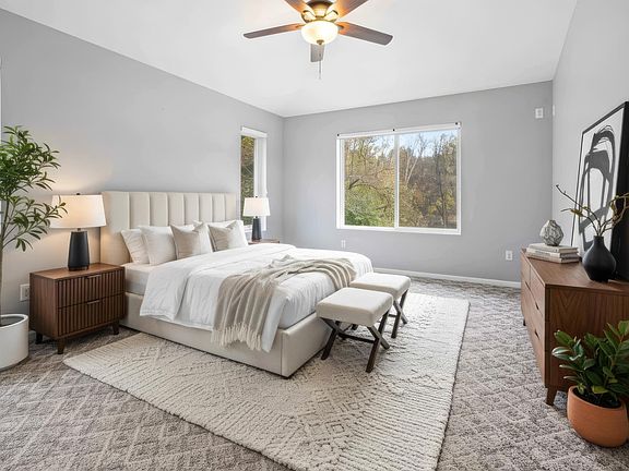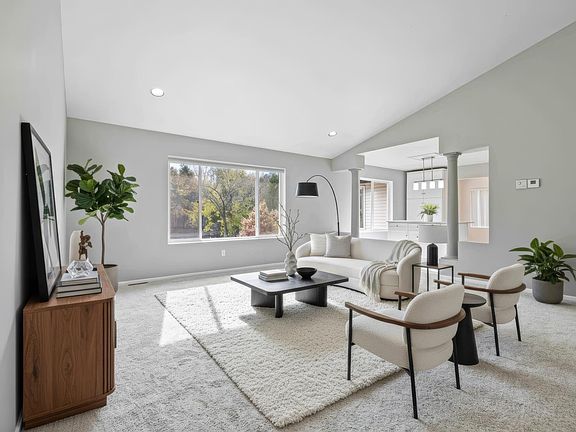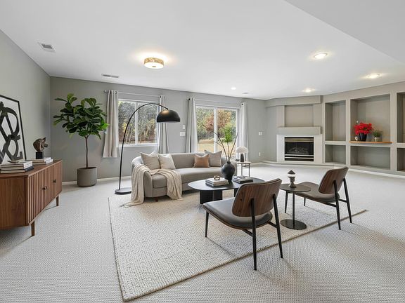 Cozy gas fireplaceSoaring vaulted ceilingsLarge windowsBright open floorplanNatural lightComfortable primary suiteFully finished lower level