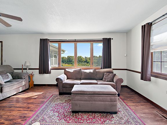 Beautifully landscaped property with 2 homes on it. Home in front is a 3 bedroom/ 1 bath ranch with a large deck off back (1056 Square Feet on crawl). Smaller home would be great for related living or rent out to help with mortgage, great investment. Main home in back is a 3 bedroom 2 bath home with a beautiful deck and Florida room off back. (1624 Square feet with attached garage. Total Farm Acres is 21.87 acres, tillable 14.03 acres. Sit in your Florida sunroom and enjoy all the beautiful views and landscaping of your massive property. Also a large Morton Barn is on property for all your toys and storage of farm equipment. Currently the alfalfa fields are being cut by local farmers. Hunt on your own property!! Call today for your personal tour.
