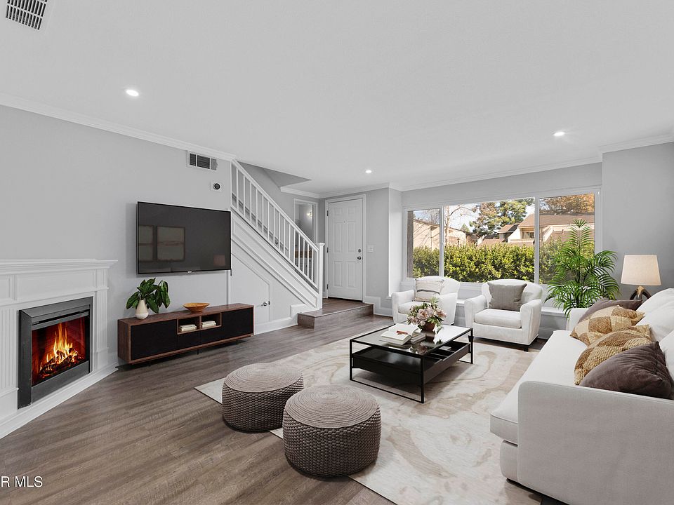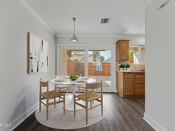 Welcome to 6564 Marquette St., Unit B - a beautifully updated 3-bedroom, 2-bathroom, 1,295 sqft townhome in the highly sought-after Varsity Park community of Moorpark. Nestled in a tranquil location at the back of the complex - this gem offers the privacy and charm of a standalone residence. Step inside to a bright, open floor plan featuring recessed lighting, luxury vinyl plank flooring throughout the main living areas, fresh interior paint, new carpet, a refreshed downstairs bathroom and cozy fireplace - perfect for relaxing evenings. Enjoy the galley-style kitchen with granite counters and direct access to the one car garage. A large glass slider off the dining area leads to your own private backyard patio with a durable Trex deck. Upstairs, the generous primary bedroom showcases an ensuite bathroom. Two additional bedrooms, including one with its own balcony, provide flexibility for guests, an office or hobbies. Convenience abounds with in-unit laundry hookups as well. The Varsity Park community provides a wealth of amenities, including sparkling pools, spa, clubhouse, playground and more. Situated near shopping, restaurants, schools, Moorpark College and easy access to the 118 / 23 freeways - this home combines comfort, style and unbeatable convenience. Welcome home!